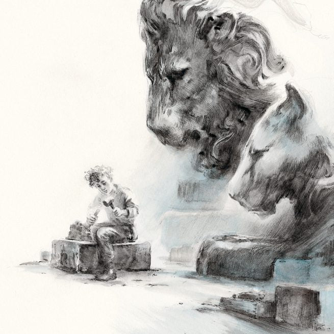 حتى يناديه النحات ويريه مخزن محاولاته الفاشلة التي سبقت كل هذه الإبداعات والأعمال الفنية الجميلة التي يراها الولد كنتيجة نهائية دون أن يعلم كمّ المحاولات والتجارب السابقة لها.